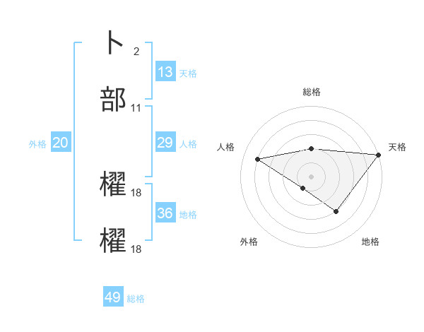 卜部 櫂櫂さんを姓名の画数から五運を鑑定