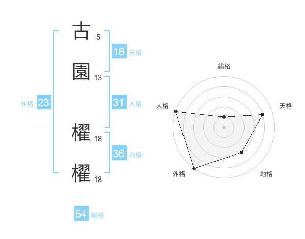 古園 櫂櫂さんを姓名の画数から五運を鑑定