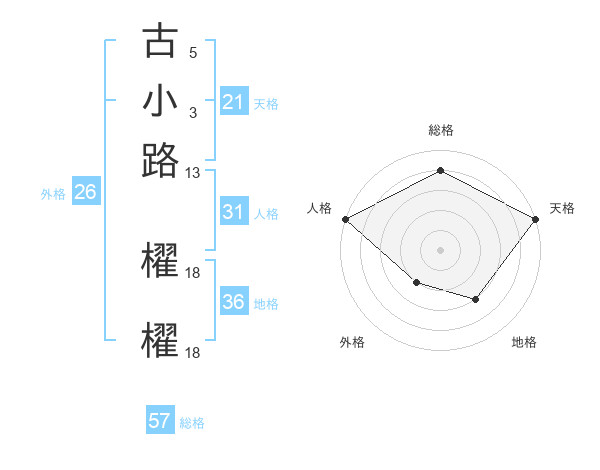 古小路 櫂櫂さんの天格は21画の5点!