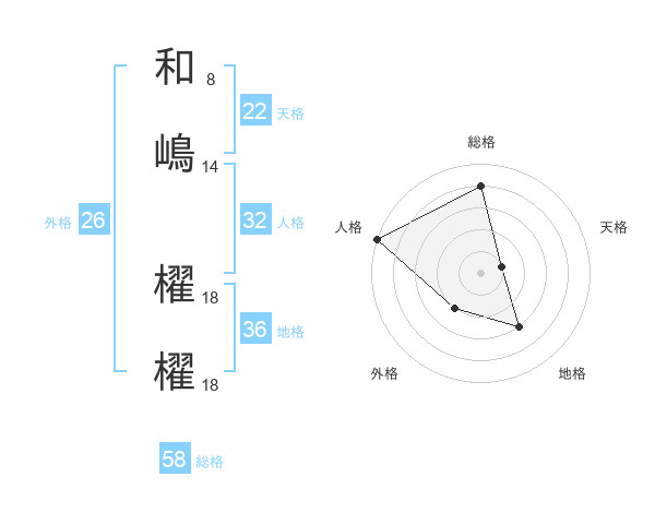 和嶋 櫂櫂さんを姓名の画数から五運を鑑定