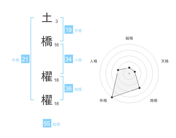 土橋 櫂櫂さんを姓名の画数から五運を鑑定