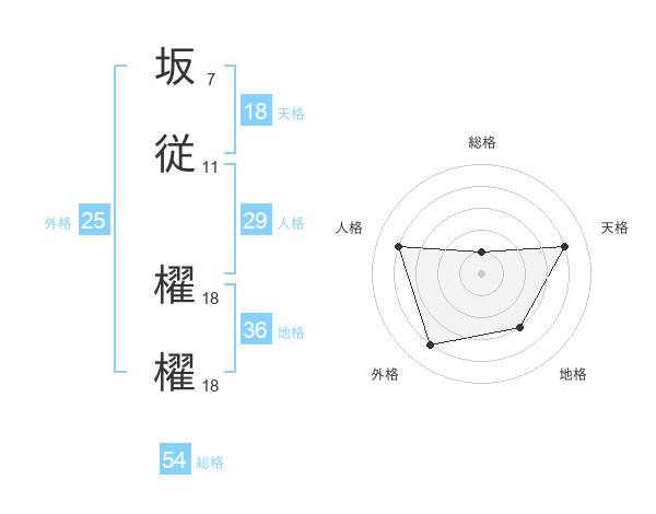 坂従 櫂櫂さんの天格は18画の4点!