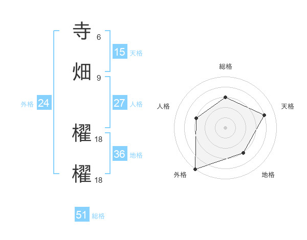 寺畑 櫂櫂さんの総格は51画の3点!