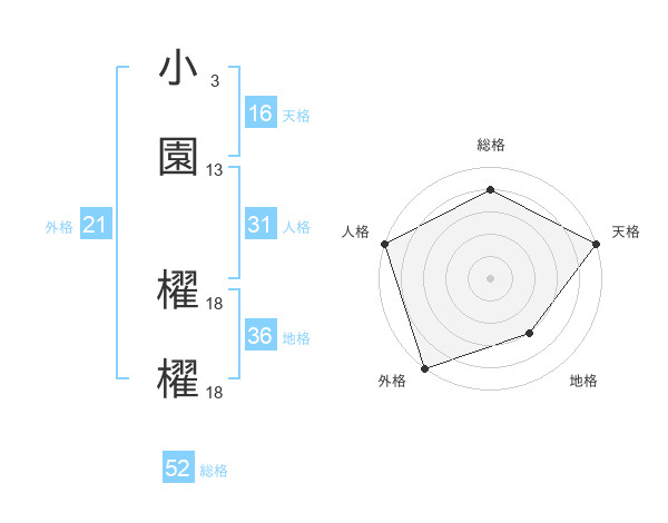 小園 櫂櫂さんを姓名の画数から五運を鑑定