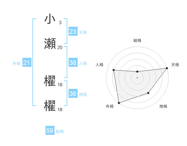 小瀬 櫂櫂さんを姓名の画数から五運を鑑定