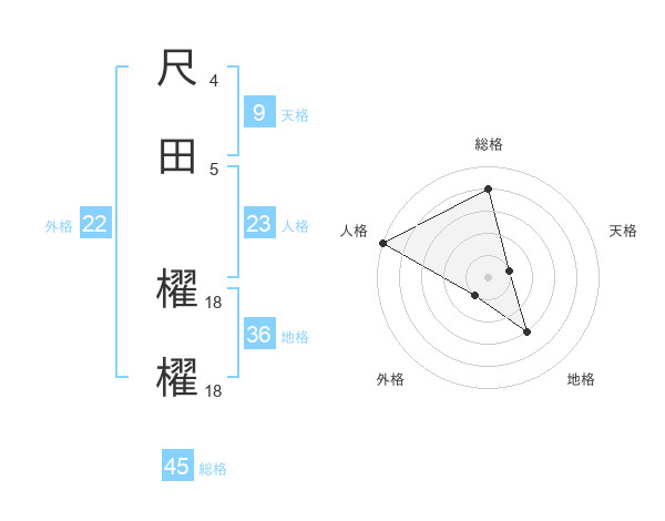 尺田 櫂櫂さんの総格は45画の4点!