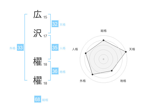 広沢 櫂櫂さんを姓名の画数から五運を鑑定