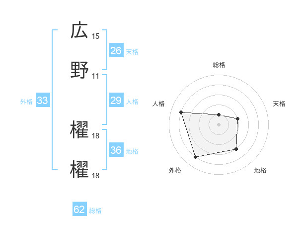 広野 櫂櫂さんの総格は62画の1点!