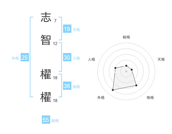 志智 櫂櫂さんの総格は55画の1点!