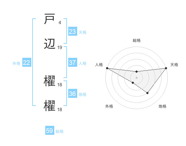 戸辺 櫂櫂さんの総格は59画の1点!