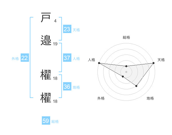 戸邉 櫂櫂さんの総格は59画の1点!
