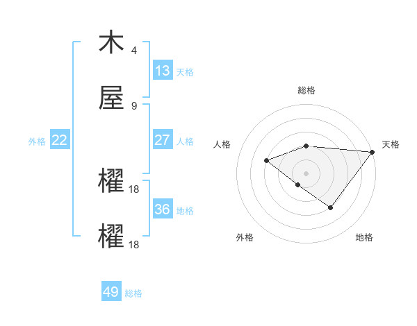 木屋 櫂櫂さんの総格は49画の2点!