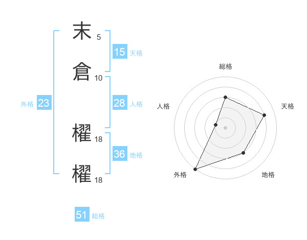 末倉 櫂櫂さんの総格は51画の3点!