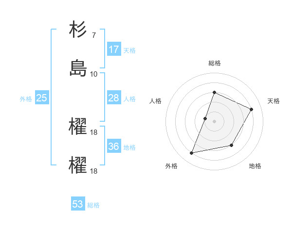 杉島 櫂櫂さんを姓名の画数から五運を鑑定
