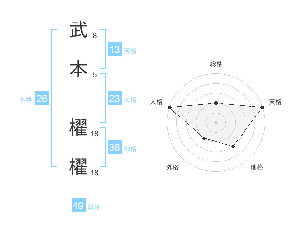 武本 櫂櫂さんの天格は13画の5点!