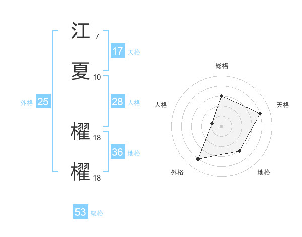 江夏 櫂櫂さんの総格は53画の3点!