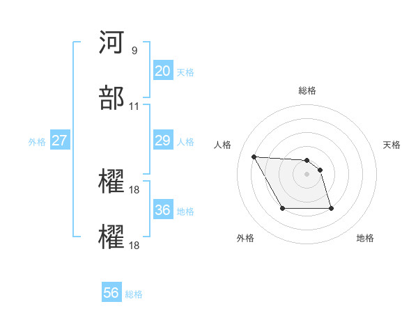 河部 櫂櫂さんを姓名の画数から五運を鑑定