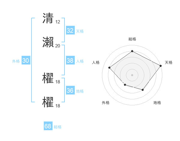 清瀨 櫂櫂さんを姓名の画数から五運を鑑定