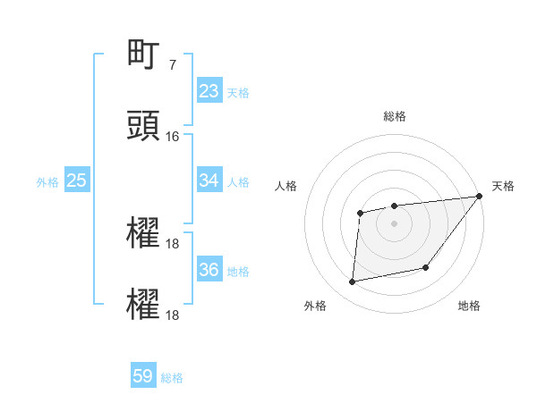 町頭 櫂櫂さんを姓名の画数から五運を鑑定
