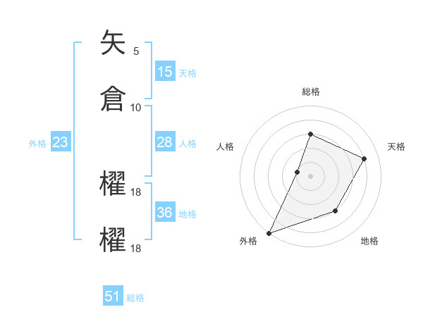 矢倉 櫂櫂さんの総格は51画の3点!