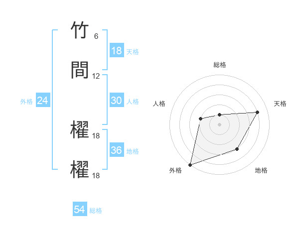 竹間 櫂櫂さんを姓名の画数から五運を鑑定