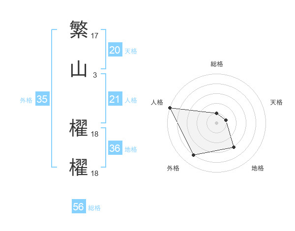 繁山 櫂櫂さんを姓名の画数から五運を鑑定