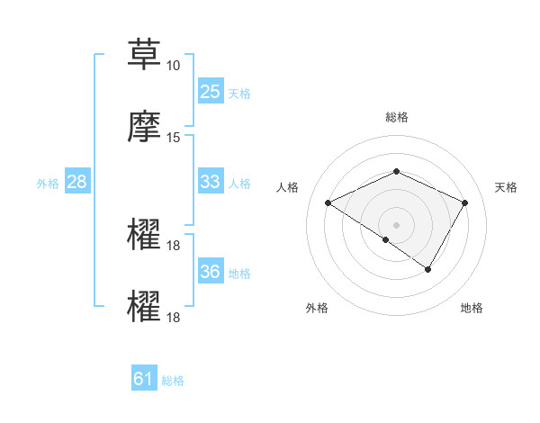 草摩 櫂櫂さんを姓名の画数から五運を鑑定