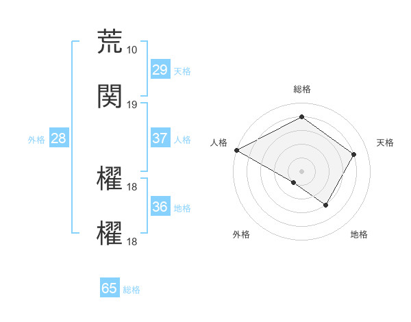 荒関 櫂櫂さんを姓名の画数から五運を鑑定