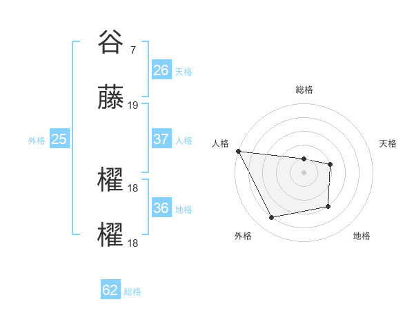 谷藤 櫂櫂さんを姓名の画数から五運を鑑定