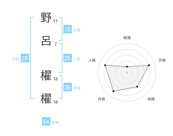 野呂 櫂櫂さんの天格は18画の4点!
