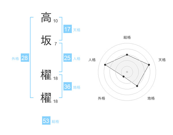 高坂 櫂櫂さんを姓名の画数から五運を鑑定