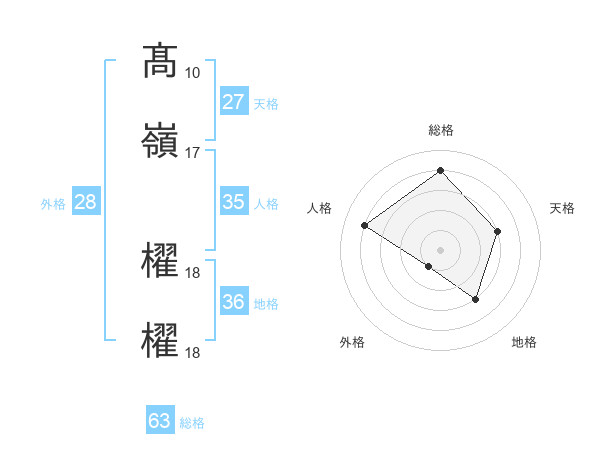 髙嶺 櫂櫂さんの総格は63画の4点!