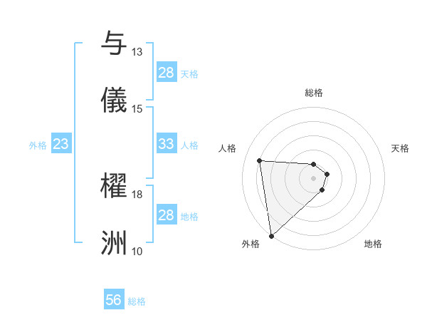 与儀 櫂洲さんを姓名の画数から五運を鑑定