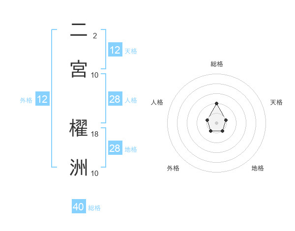 二宮 櫂洲さんの地格は28画の1点!