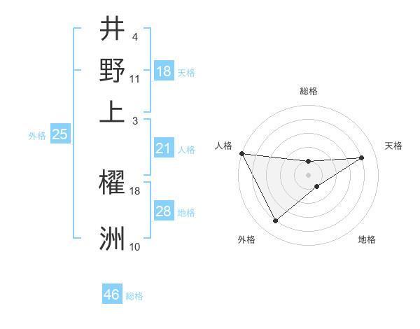井野上 櫂洲さんの天格は18画の4点