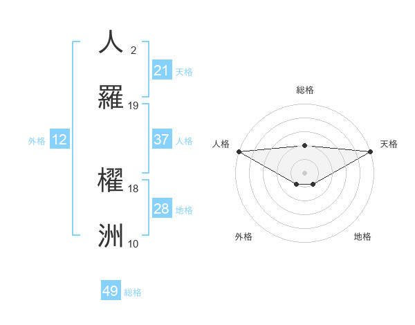 人羅 櫂洲さんを姓名の画数から五運を鑑定
