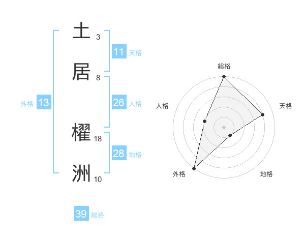 土居 櫂洲さんの総格は39画の5点!