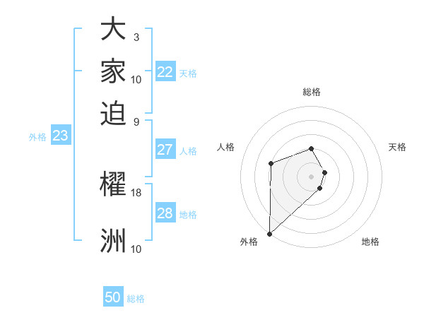 大家迫 櫂洲さんを姓名の画数から五運を鑑定
