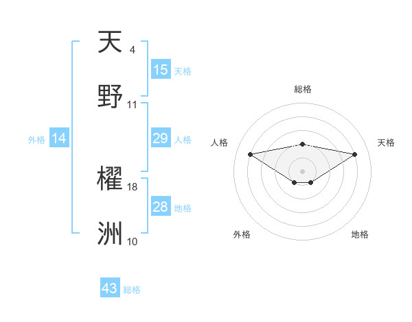 天野 櫂洲さんを姓名の画数から五運を鑑定