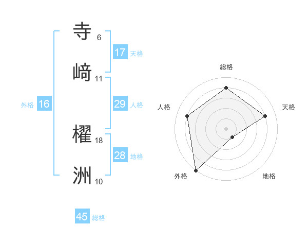 寺﨑 櫂洲さんの外格は16画の5点!
