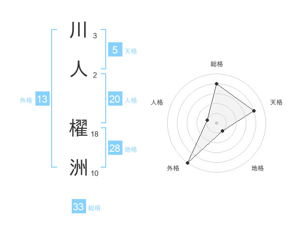 川人 櫂洲さんの総格は33画の4点!