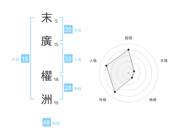 末廣 櫂洲さんを姓名の画数から五運を鑑定