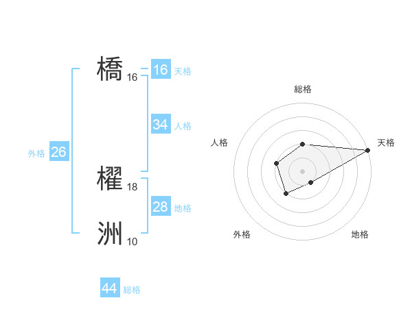 橋 櫂洲さんの天格は16画の5点!