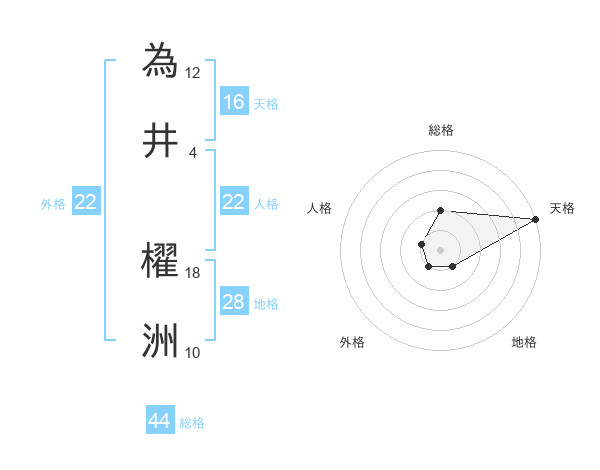 為井 櫂洲さんの総格は44画の2点!