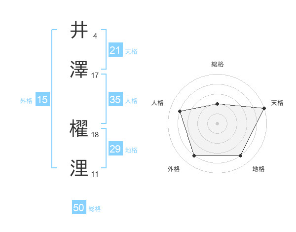 井澤 櫂浬さんの総格は50画の2点!