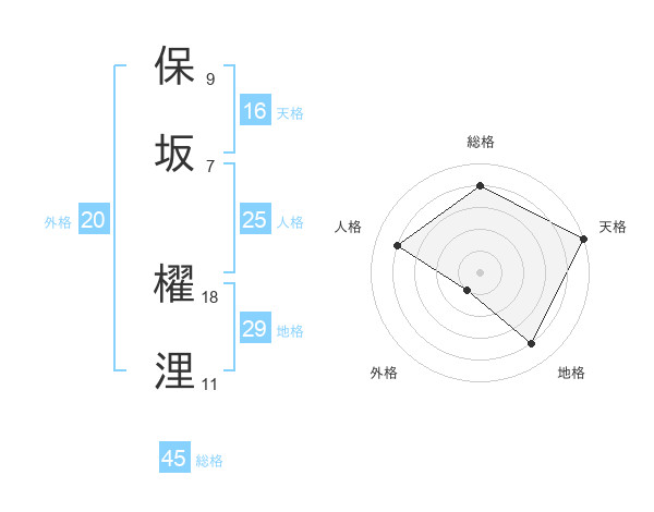 保坂 櫂浬さんの天格は16画の5点!