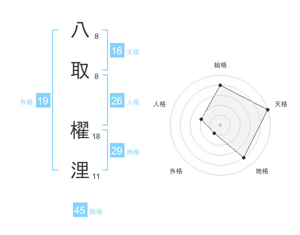 八取 櫂浬さんの総格は45画の4点!
