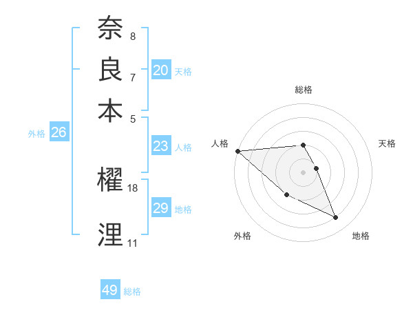 奈良本 櫂浬さんの地格は29画の4点!