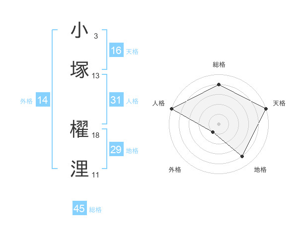 小塚 櫂浬さんの総格は45画の4点!