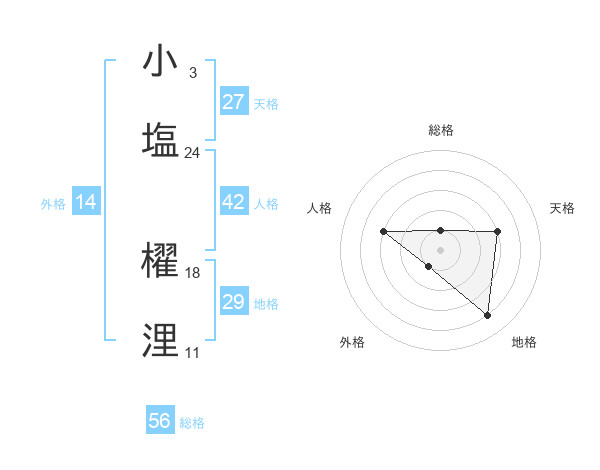 小塩 櫂浬さんを姓名の画数から五運を鑑定